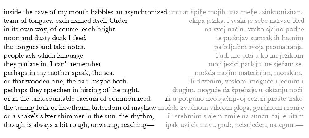 Andrea Jurjević is the author of two poetry collections and a chapbook, most recently, In Another Country (Saturnalia Press, 2024). Her book-length translations from Croatian include Mamasafari (Diálogos Press, 2018) by Olja Savičević and Dead Letter Office (The Word Works, 2020) by Marko Pogačar. She is a native of Croatia.